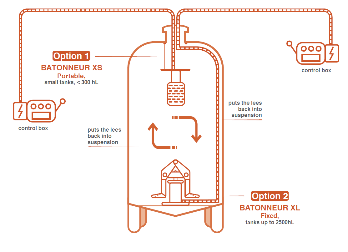 Je peux maintenant remuer les lies dans mon sommeil grâce au Bâtonneur™ ! Cette solution, automatisée et liée à un moteur d'agitation des lies, me permet de remettre en suspension les lies rapidement et moins violemment que les méthodes traditionnelles.